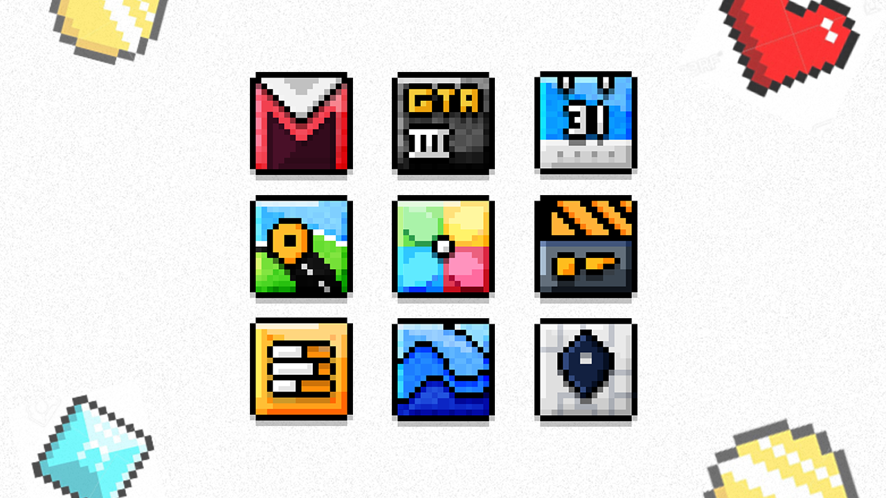 The name is derived from the words 'Pixel' and 'Square'. These icons were designed to bring a highly detailed pixel art look and feel to the home-screen, with each icon being designed, literally, pixel by pixel. Now available on my Etsy shop!